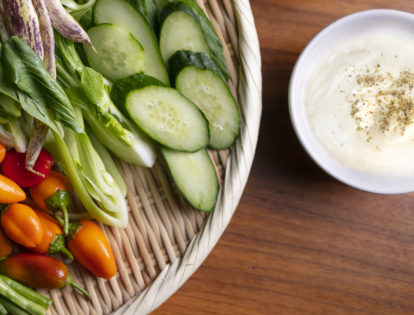 Char the vegetables, then toss in Momofuku Savory Salt and serve with your favorite chips.