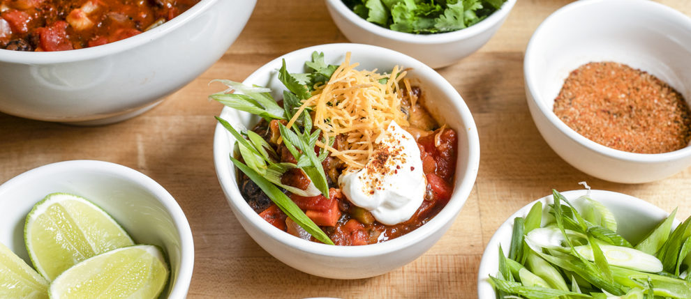 Easy weeknight vegetable chili that packs a punch—and is ready in around 30 minutes.